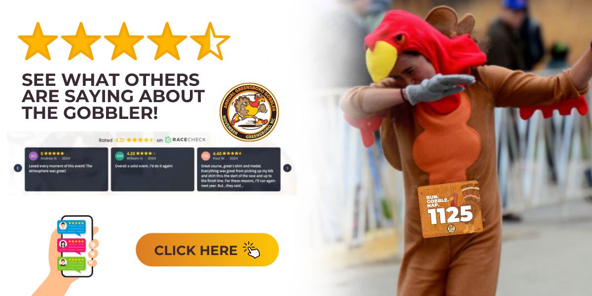 We are excited to announce the Greensboro Gobbler 5K and 1 Mile Fun Run/Walk, a Thanksgiving tradition for 24 years and the largest turkey trot in Greensboro, NC, is now under NEW OWNERSHIP! For more than two decades, the Gobbler has brought families, friends, and the Greensboro community together to kick off the holiday, and that legacy will continue with an even bigger festive spirit for runners and walkers of all ages.