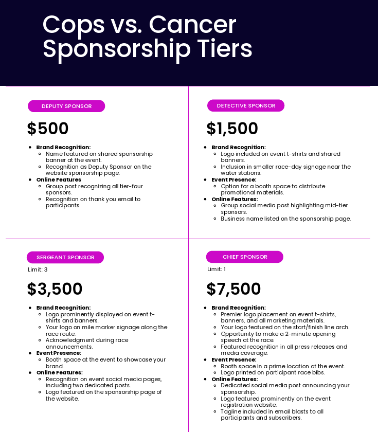 Join us for the Cops vs. Cancer Fun Run, a community event where local law enforcement teams up with cancer survivors, supporters, and families to raise awareness and funds for the Hereditary Cancer Foundation, a local nonprofit founded in memory of Omaha Police Officer Kamie Preston.