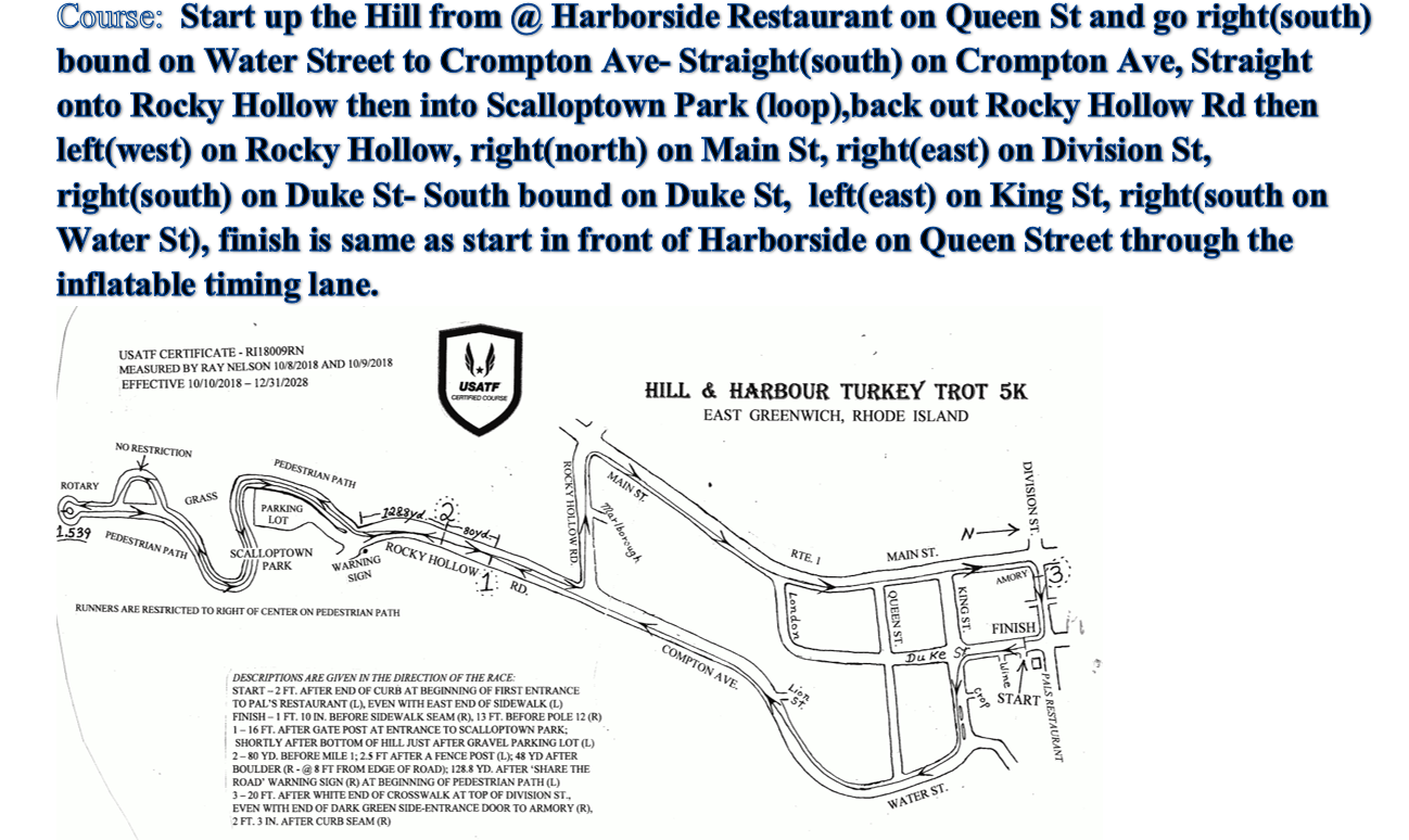 The East Greenwich Hill and Harbour Turkey Trot 2025 presented by The East Greenwich Turkey Trot Foundation is a fully sanctioned and certified 5K race held in East Greenwich, Rhode Island the Saturday after Thanksgiving on November 29, 2025. The course highlights much of the beauty of East Greenwich, which includes Main Street, the waterfront and the hill district. In addition to the 5K race the festivities include a 1 Mile Fun Run with great music and fun which will allow the entire community to get involved. This race has become a Thanksgiving time tradition for many! The 5K will begin at 8:30 and the 1 Mile Fun Run will begin at 9:30.