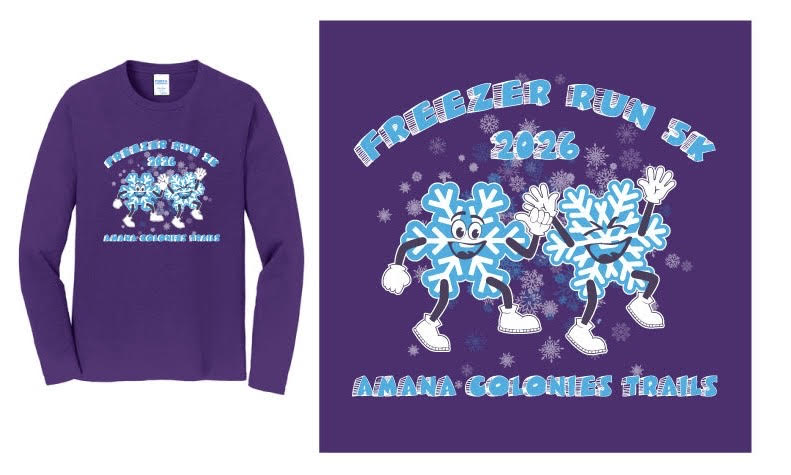 Please note once you have registered we have a NO REFUND policy. In the event that the race in canceled or rescheduled we will not issue a refund either. We are a non-profit organization so all proceeds from the race go to benefit the Amana Colonies Trails. If you are not able to make a rescheduled race date you can contact us to pick up your t-shirt /package in Amana.