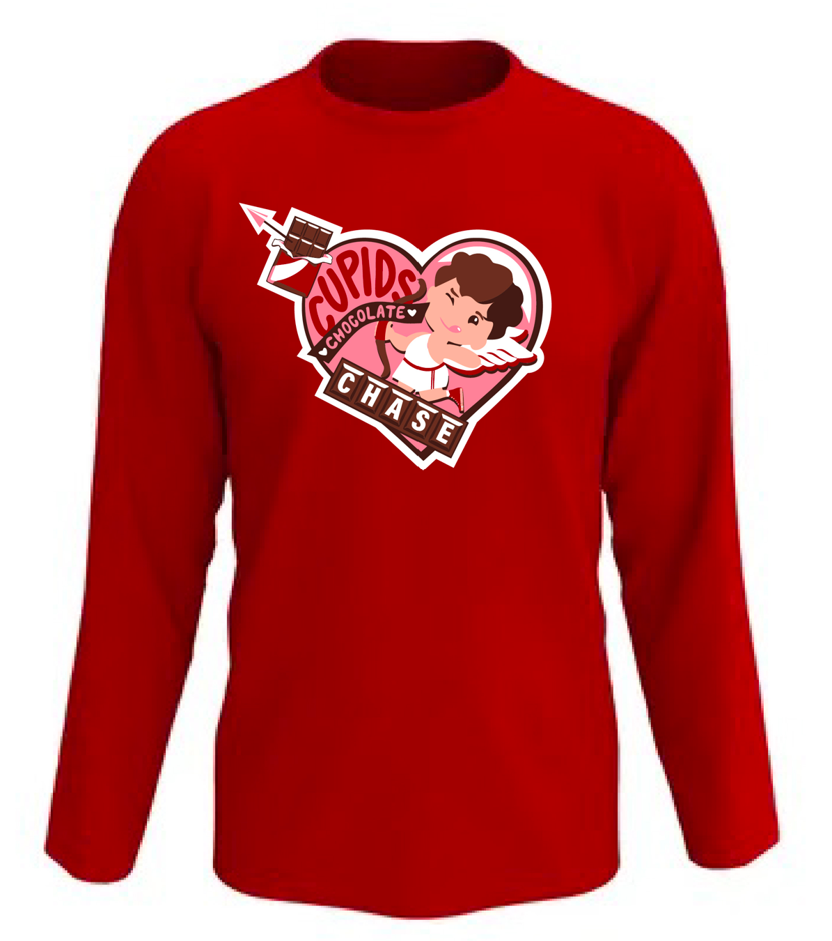 Below is the official event shirt for the 2026 Cupids Chocolate Chase! Shirts will be red, long-sleeve, and tech fabric. Register early to guarantee your size! Shirts are available in the following sizes until sold out.