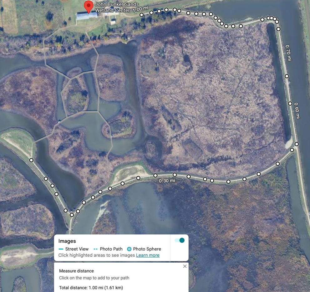 This course is considered a trail run due to the uneven trail conditions, gravel, and natural grade of the terrain. Trail weaves in between wetland cells, berms and meadows. The 10K is two loops of the 5K course. The course is clearly marked with directional signage and distance markers. Hydration stations are 1.25 – 1.5 miles into the course and ~.75 before the completion of the 5K loop. Start and finish is located next to education silos.